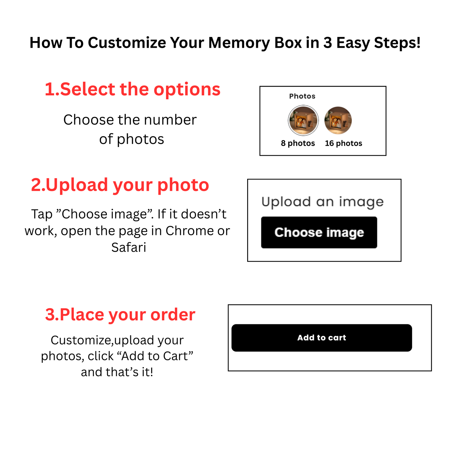 Just upload your favorite photo and we’ll handle the rest! Each box is custom-made and shipped straight to your door.